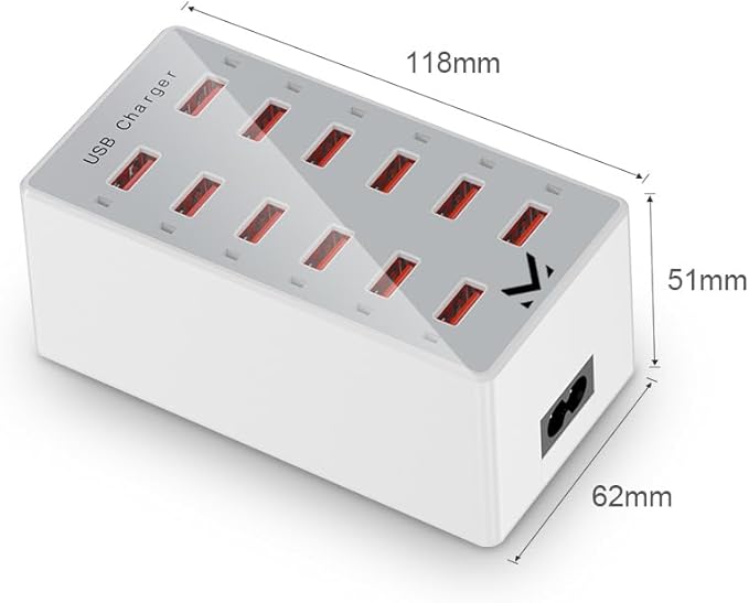 Зарядная станция на 12 USB портов mod. 1012P, 5V1-2.4A, ABS-пластик, белый
