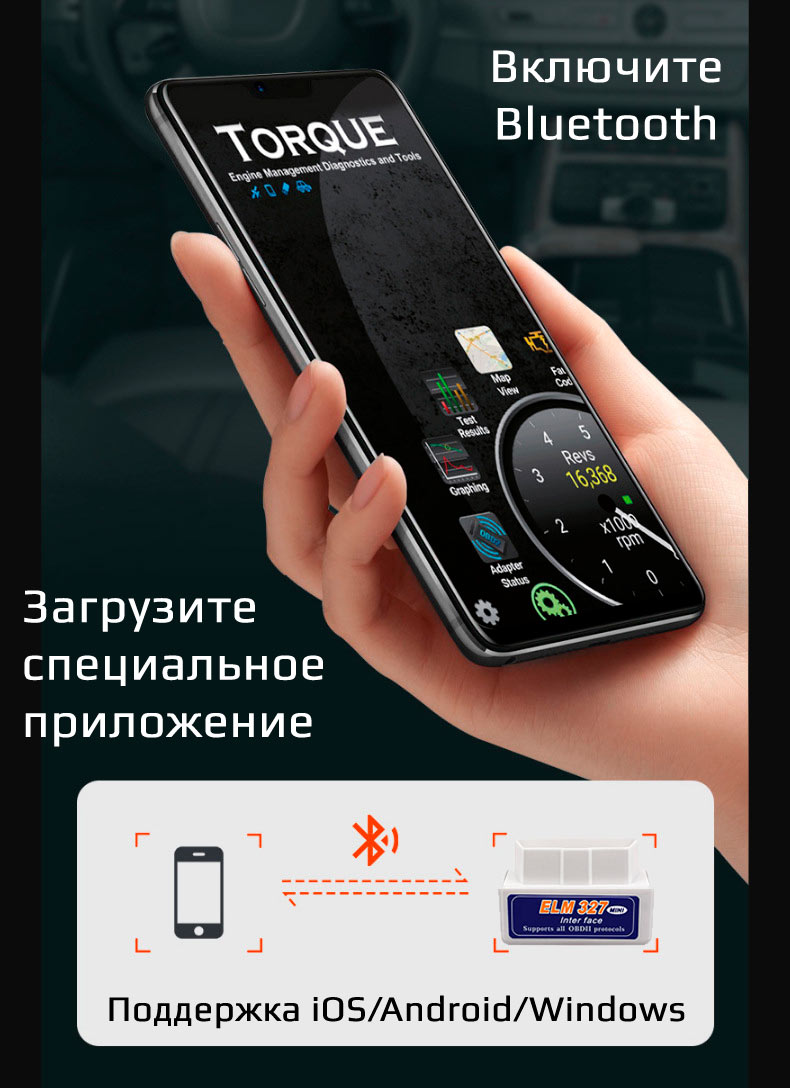 - Приложения: Полная поддержка популярных программ: Car Scanner, Torque (Pro/Lite), DashCommand, OpenDiag и многих других.