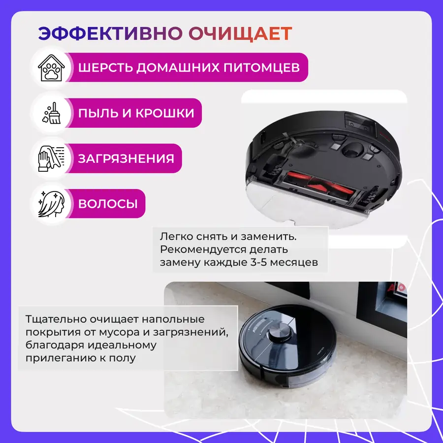 Совместима с моделями: Roborock S4, Roborock S5, Roborock S50, Roborock S51, Roborock S55, Roborock S502-00, Roborock S502-02, Roborock S6, S60, S65, Roborock T60, Roborock T61, Roborock T65, Roborock T4, Roborock T6, Roborock S5 Max, Roborock S6 Max, Xiaowa E2, Xiaowa E3, Xiaowa E4, Xiaowa E202-00