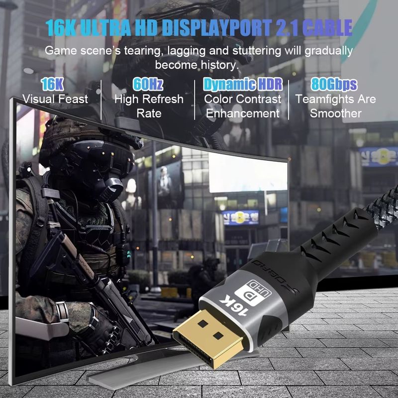 Кабель DisplayPort - DisplayPort v2.1 16K30Hz / 8K60Hz / 4K240Hz, 80Gps, 12bit, папа-папа, 3 метра, черный