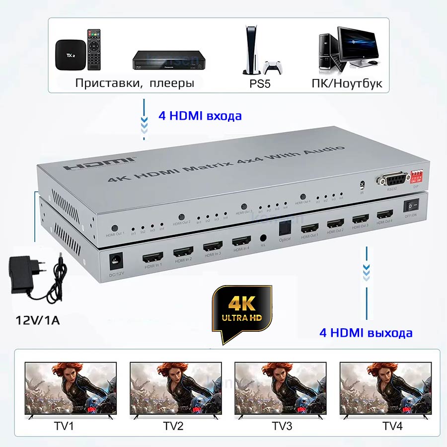 - Количество входных портов HDMI: 4