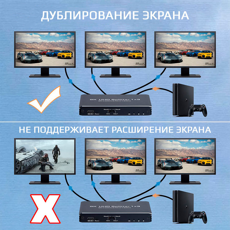 4K@120Hz — особенно актуально для игровых мониторов, PS5, Xbox Series X. Многие сплитера 4K поддерживают только до 30Hz. !!!При 120Hz передача изображения гораздо плавнее чем при 30Hz/60Hz.