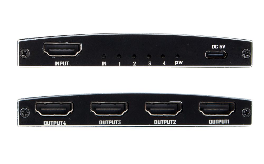 - Подключение до 4 устройств: Один HDMI-вход и 4 HDMI-выхода позволяют легко распределять сигнал на несколько дисплеев без потери качества.