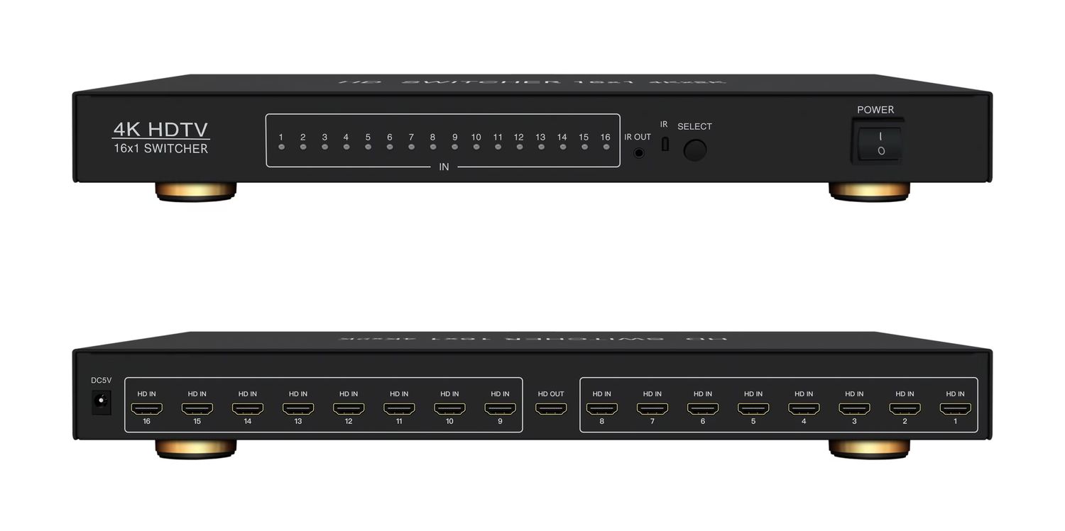- Подключение 16 источников: Включает 16 HDMI-входов, что позволяет одновременно подключать различные устройства, такие как игровые консоли, Blu-ray плееры, телевизионные приставки и компьютеры.