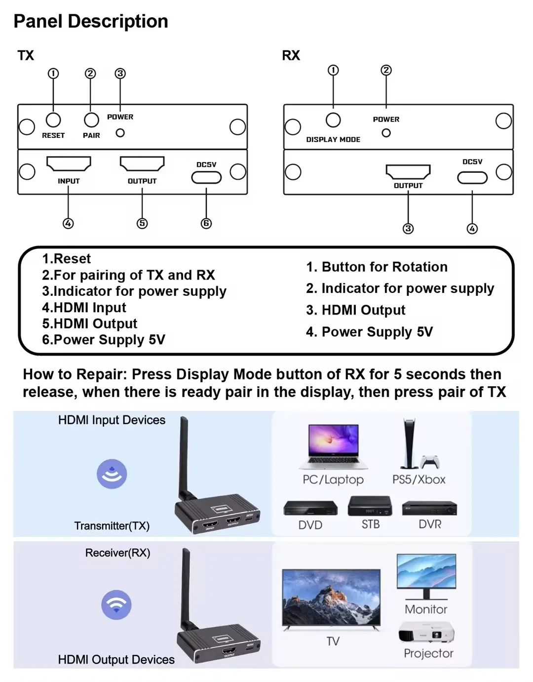 - Многофункциональность: Один передатчик может обслуживать несколько приемников одновременно, что идеально подходит для домашних кинотеатров или презентаций. Пульт дистанционного управления делает использование удлинителя намного удобнее.