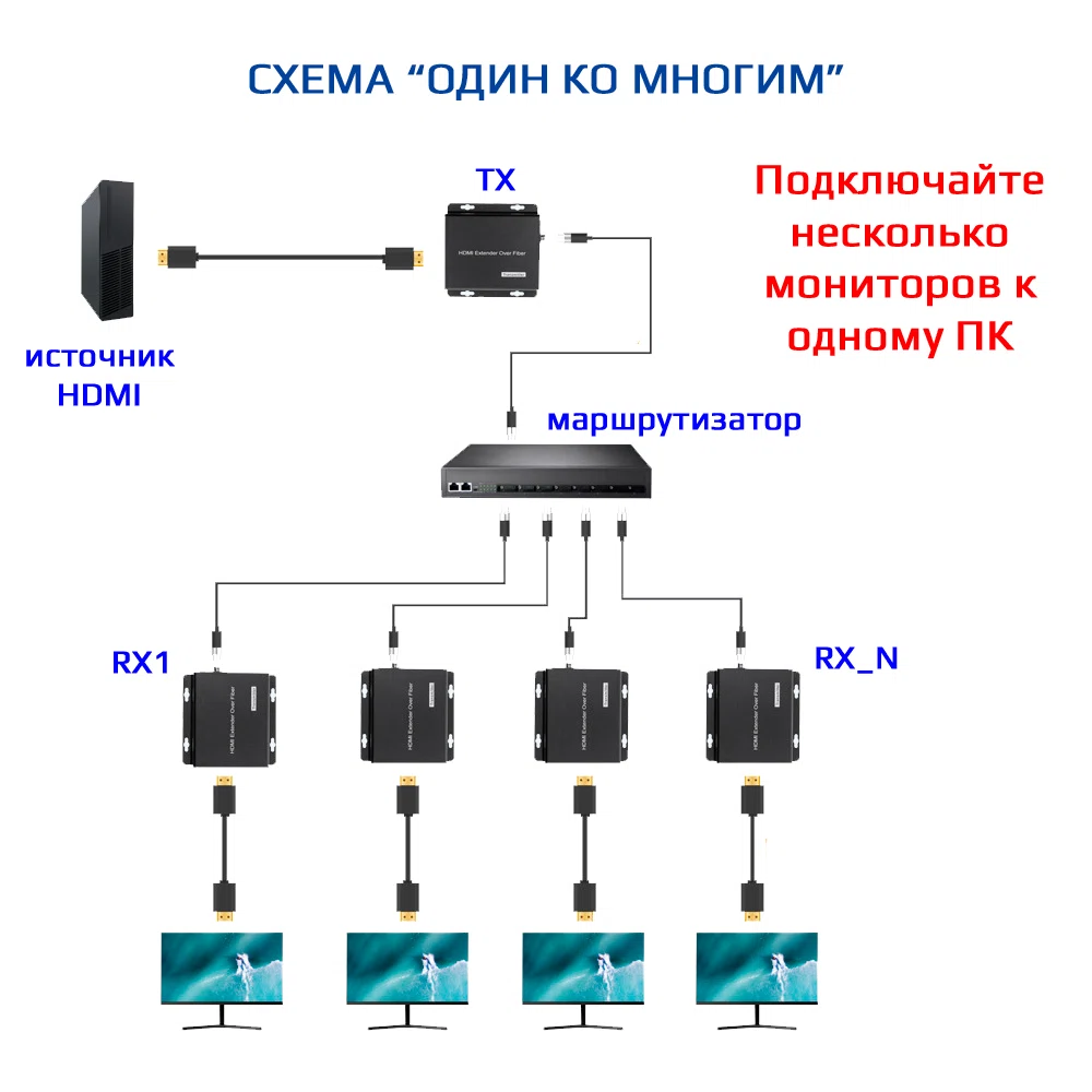 • Идеально для больших помещений: Удлинитель HDMI по витой паре особенно полезен для конференц-залов, учебных аудиторий и домашних кинотеатров, где требуется передача сигнала на большие расстояния.