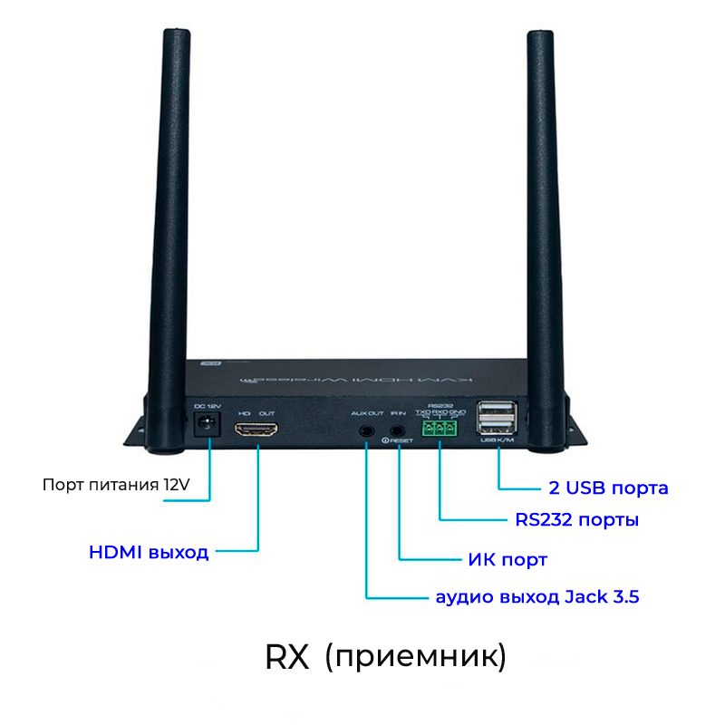 - порты RX: HDMI OUT x1, AUX OUT x1, IR IN x 1, RS232 x1, USB2.0 x2, DC JACK x1;