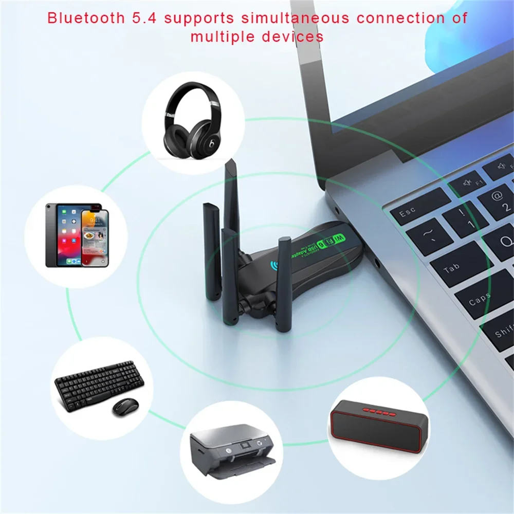 Этот адаптер — отличный выбор для тех, кто ценит высокую скорость, надежность и универсальность в подключении к беспроводным сетям и Bluetooth-устройствам.