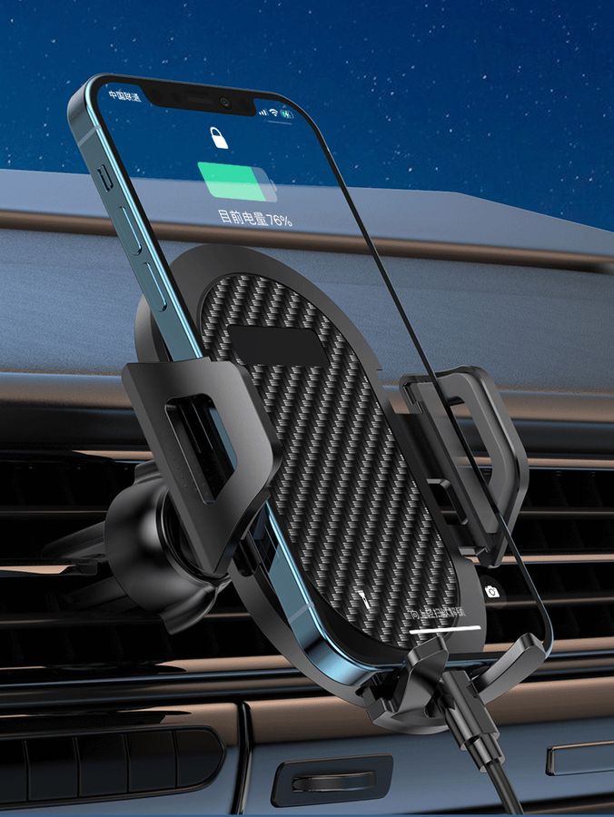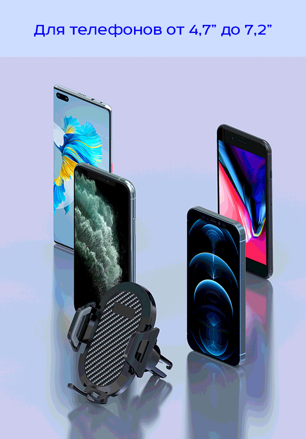 Конструкция держателя не перекрывает зарядный разъем и не препятствует зарядке телефона.