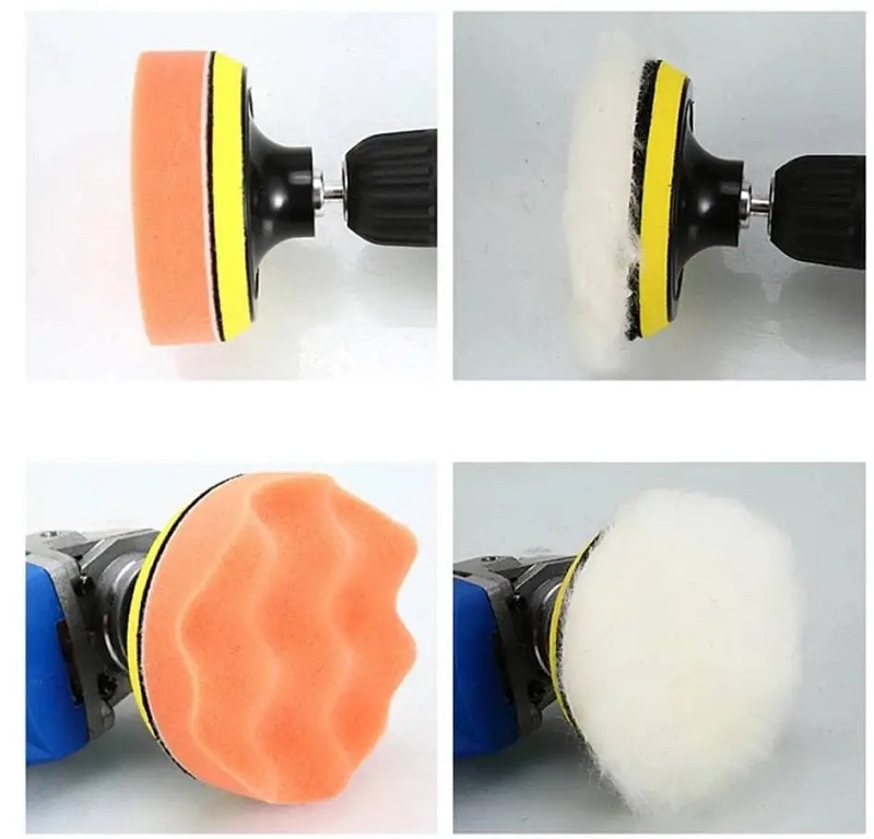 В наборе есть губки разной жесткости и формы и полировочный мех, для разных этапов полировки.