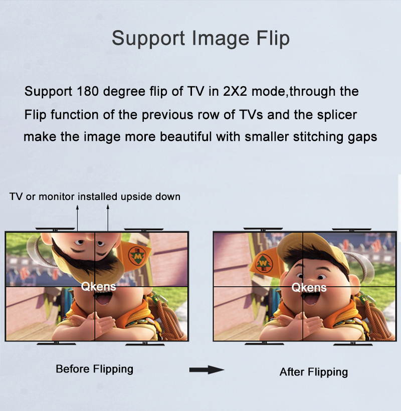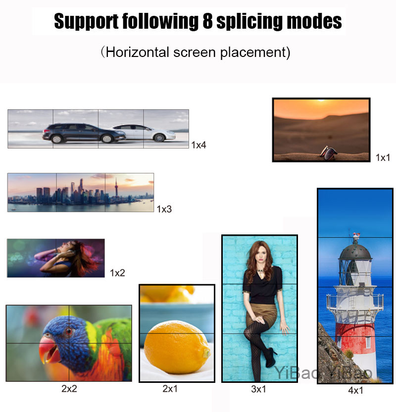 - Комбинированный процессор контроллера обеспечивает деление экрана в следующих вариациях: 1х1, 1x2, 2x1, 2x2, 1x3, 3x1, 1x4, 4x1.