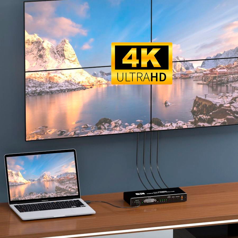 Создайте эффектный визуальный опыт с контроллером видеостены HDMI 4K UltraHD на 4 экрана 2x2! Идеальное решение для эффективной презентации информации, рекламы, видеонаблюдения или развлечений. Превратите вашу идею в реальность с этим надежным и функциональным устройством!