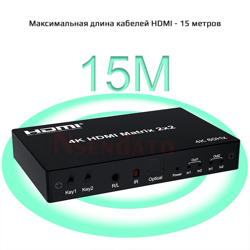Матричный переключатель HDMI на 2 входа и 2 выхода позволяет одновременно подключать 2 устройства источника сигнала к 2-м дисплеям HDMI: телевизоры, мониторы, проекторы. Работает с помощью дистанционного ИК-пульта и кнопок на самом коммутаторе. Все дисплеи выводят одинаковое изображение из выбранного источника сигнала.