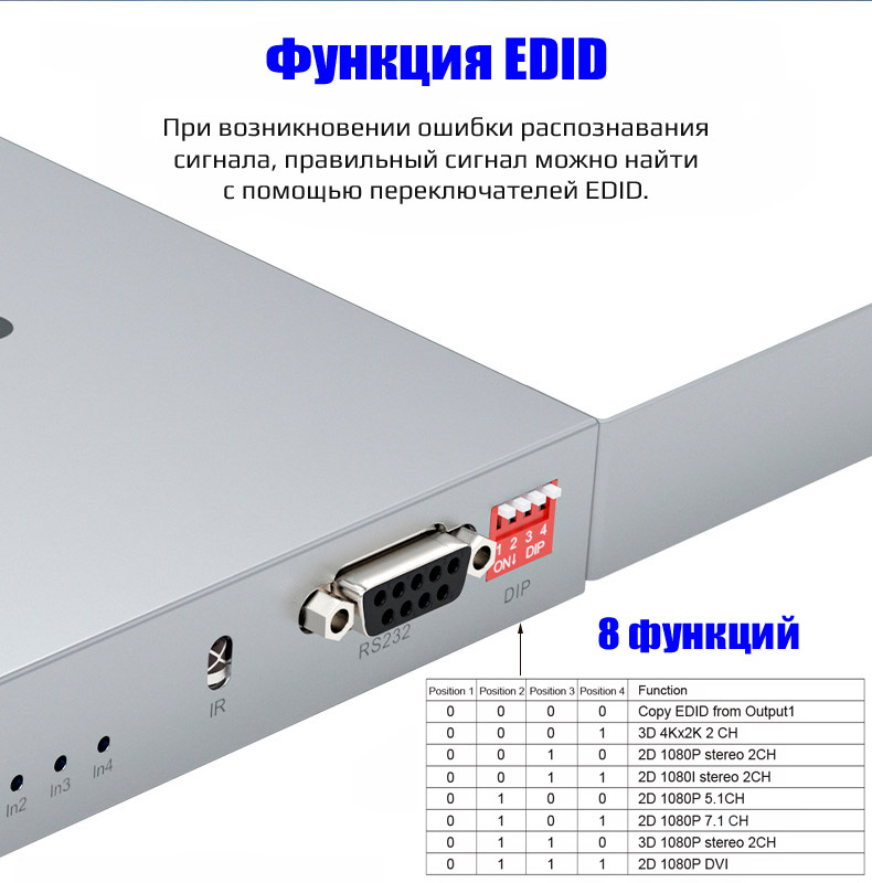 Функция EDID поможет правильно выбрать формат видео при возникновении ошибки распознавания сигнала.
