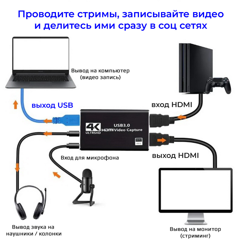 Повысьте качество вашего контента с картой видеозахвата USB 3.0 - HDMI 4K и откройте новые горизонты для творчества!