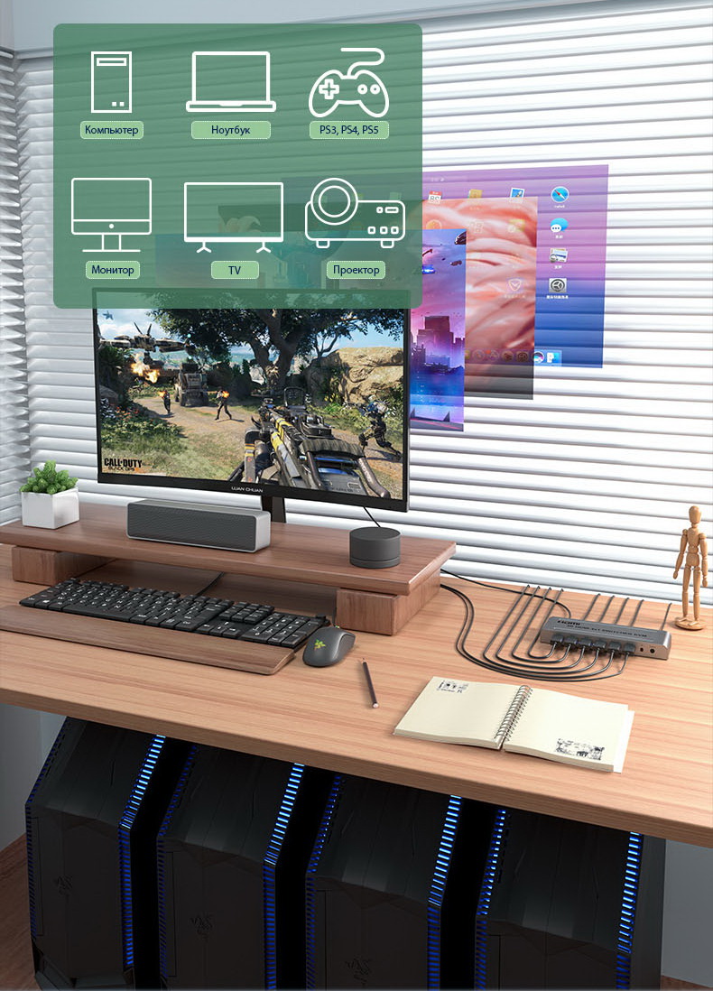 - KVM HDMI переключатель 4x1;