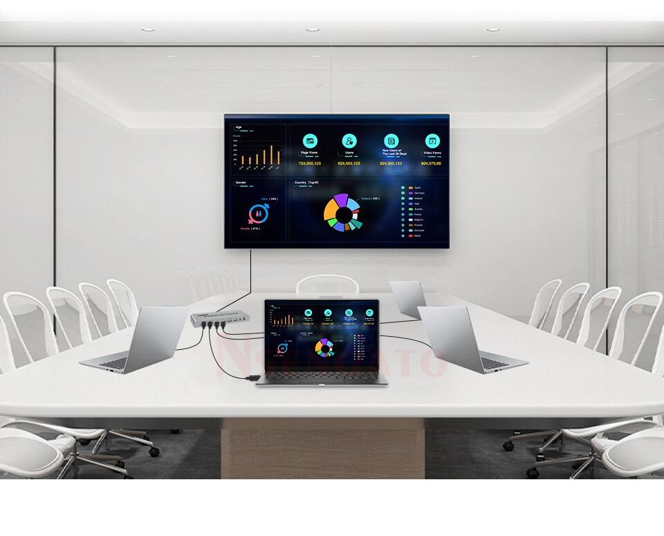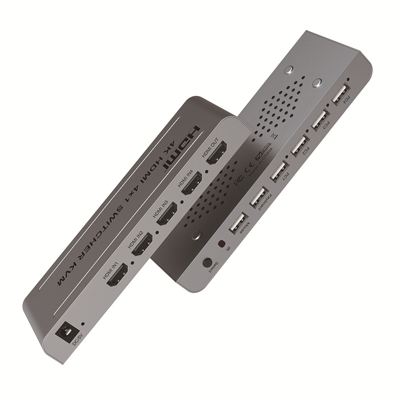 Четырехпортовый KVM-переключатель 4K HDMI USB позволяет управлять четырьмя устройствами с выходами HDMI и USB (компьютер, ноутбук и т.п.) с помощью одного дисплея, клавиатуры и мыши. Переключать можно с помощью пульта ДУ или кнопки на корпусе устройства, также возможно переключение с использованием горячих кнопок на клавиатуре – “ctrl + 1/2/3/4” или “* + 1/2/3/4“.