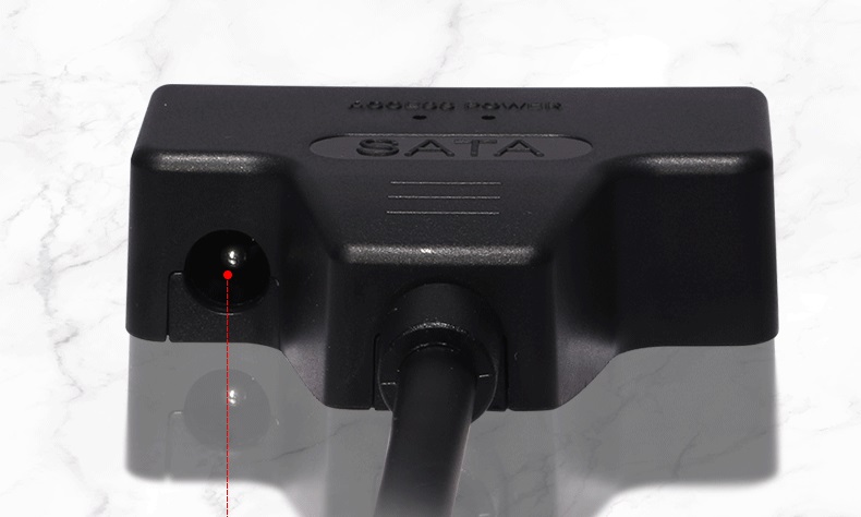 – Разъем питания для БП 12V2А DC5.5mmx2.1mm (Внимание! Блок питания в комплект не входит, необходим для работы с дисками 3.5″. При необходимости заказывается отдельно).