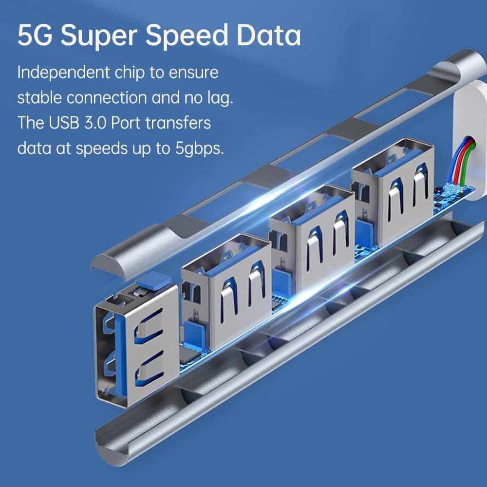 Адаптер - хаб USB3.1 Type-C/USB3.0 Type-A на USB3.0 - 3x USB2.0, серый