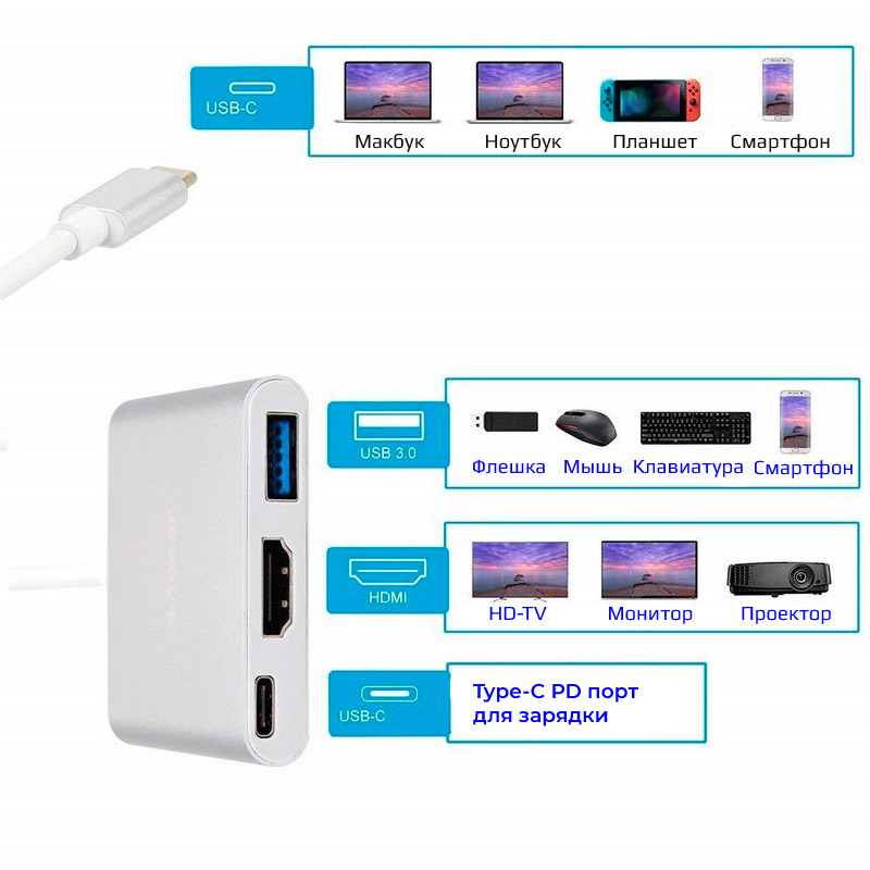 Важно!!! Не все телефоны/ноутбуки с интерфейсом USB Type-C могут поддерживать передачу видеопотока. Порт USB Type-C должен поддерживать технологию “DisplayPort Alternate Mode” (DP Alt Mode).