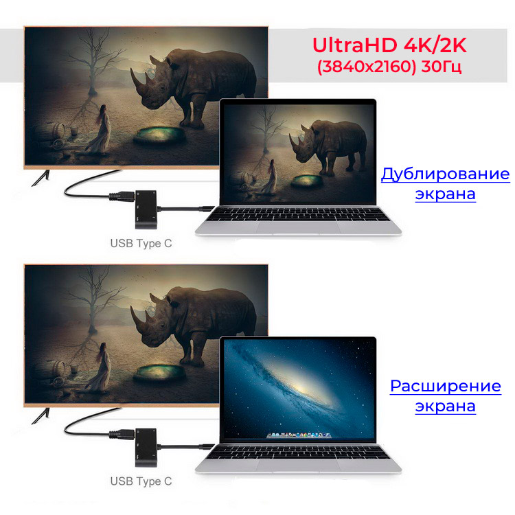 Внимание! Не все телефоны/ноутбуки с интерфейсом USB Type-C могут поддерживать передачу видеопотока. Порт USB Type-C должен поддерживать технологию “DisplayPort Alternate Mode” (DP Alt Mode).