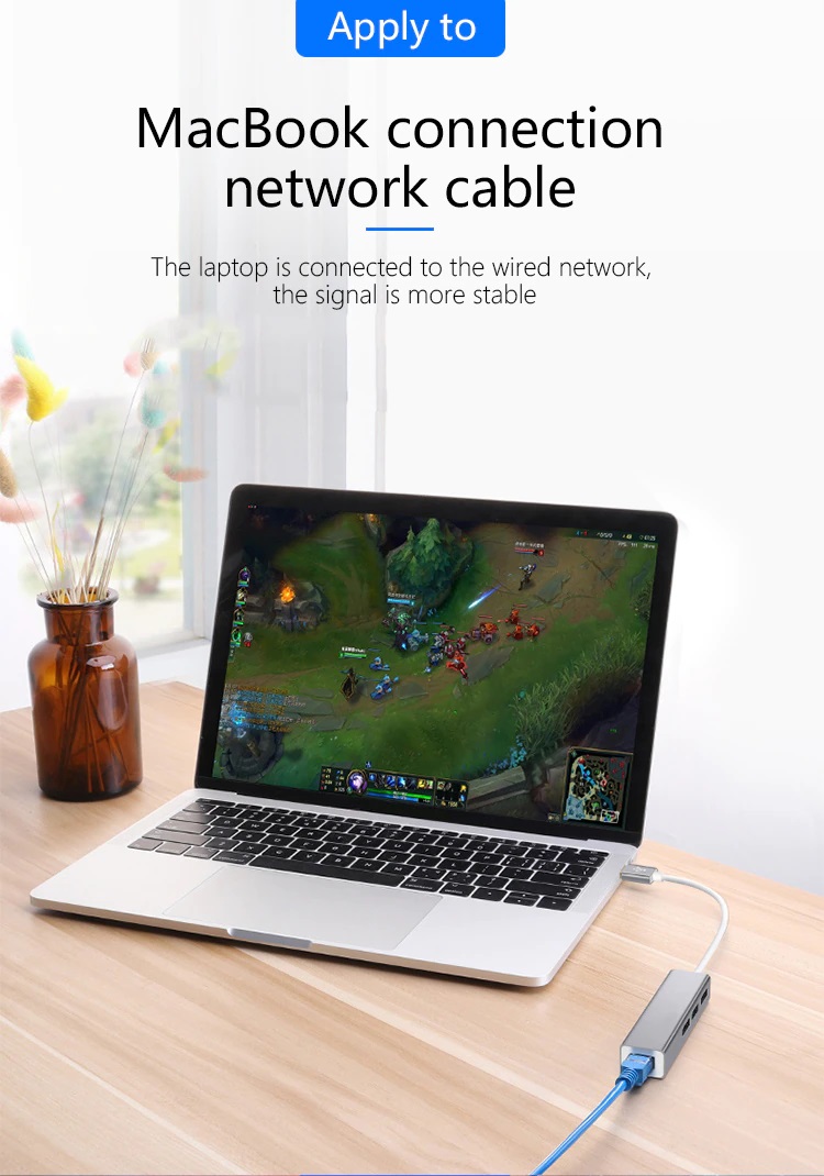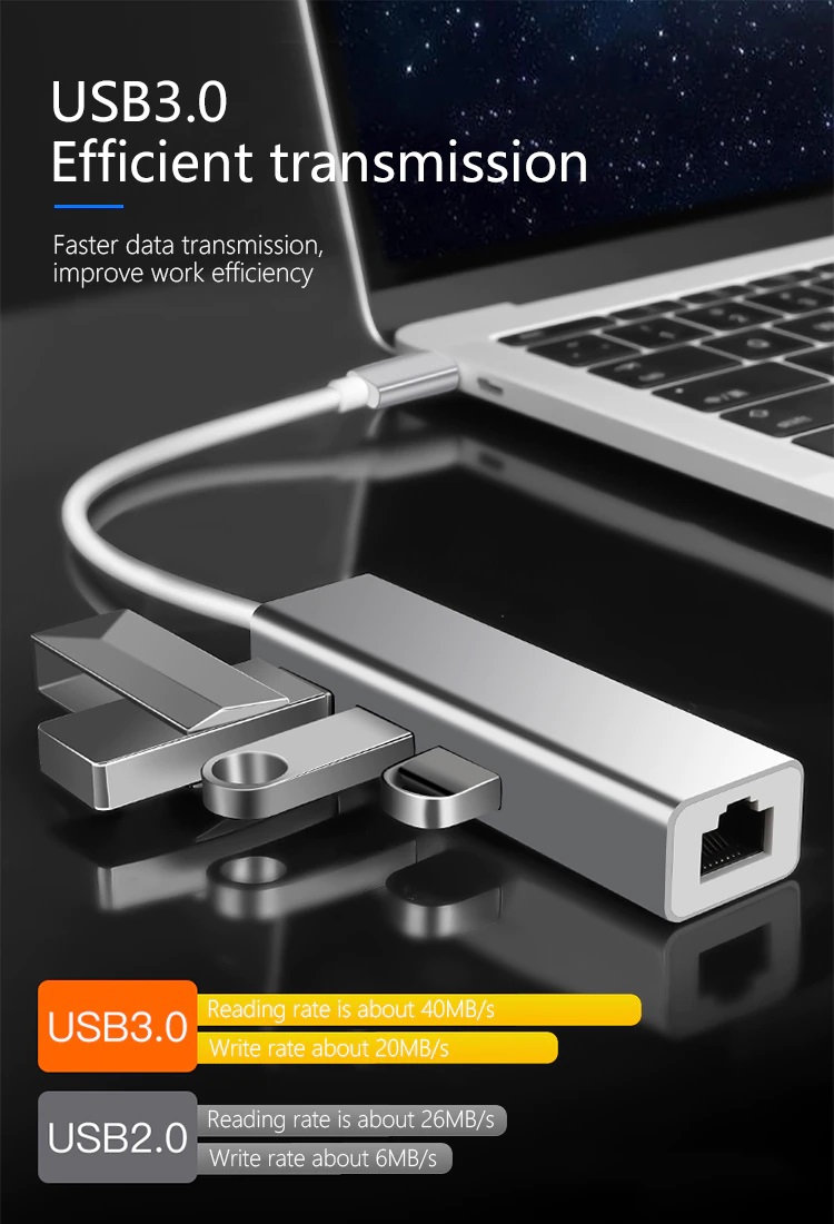 Адаптер USB3.1 Type-C – RJ45 / 3x USB3.0 позволяет расширить возможности USB3.1 Type-C порта и подключить Ethernet-соединение к Вашему компьютеру, ноутбуку или планшету через сетевой разъем RJ45 (до 1000 Мбит/с). Также через порты USB возможно подключение периферийных устройств: флешка, внешний жесткий диск, картридер, клавиатура, мышь, др. адаптер / хаб, web-камера, принтер, сканер, МФУ и т.п. Поддержка ОС: Windows XP, 7/8/10, Linux, Android System, MacOS.