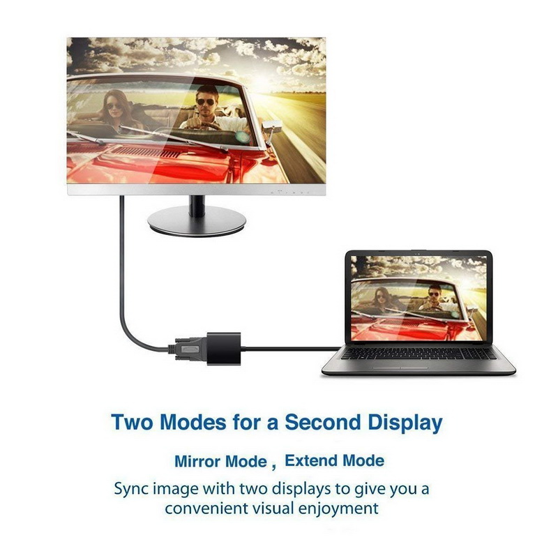 Адаптер преобразует сигнал с USB2.0/3.0 в сигнал VGA (только в этом направлении). Основное предназначение – подключить монитор, телевизор, проектор и др. технику с портом VGA к компьютеру, ноутбуку. Адаптер позволяет дублировать или расширить пространство рабочего стола Вашего ПК или ноутбука на дополнительный монитор, телевизор, проектор. Максимально поддерживаемое разрешение FullHD 1920×1080 60Гц.